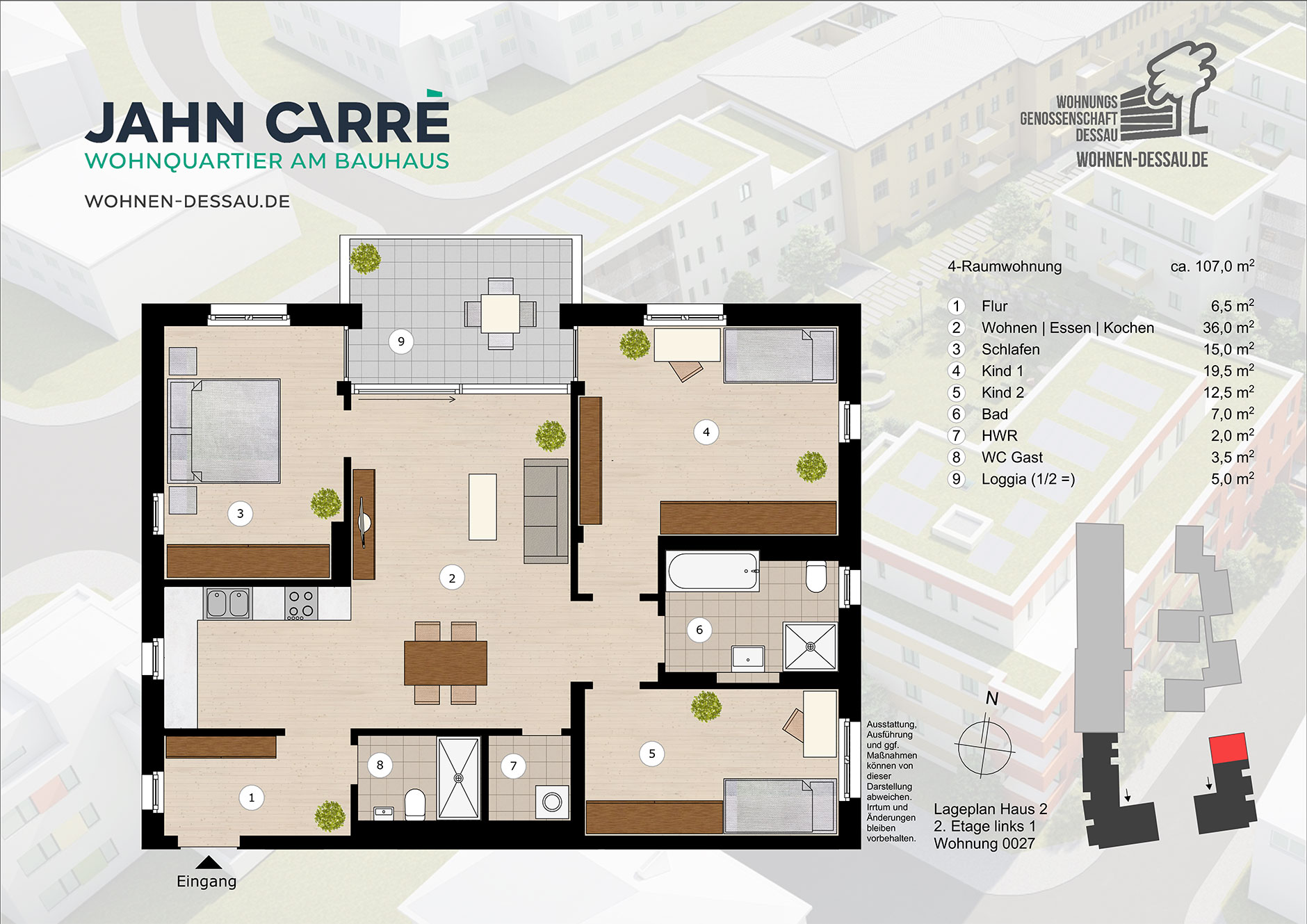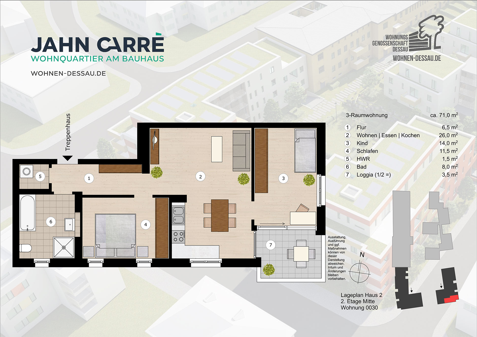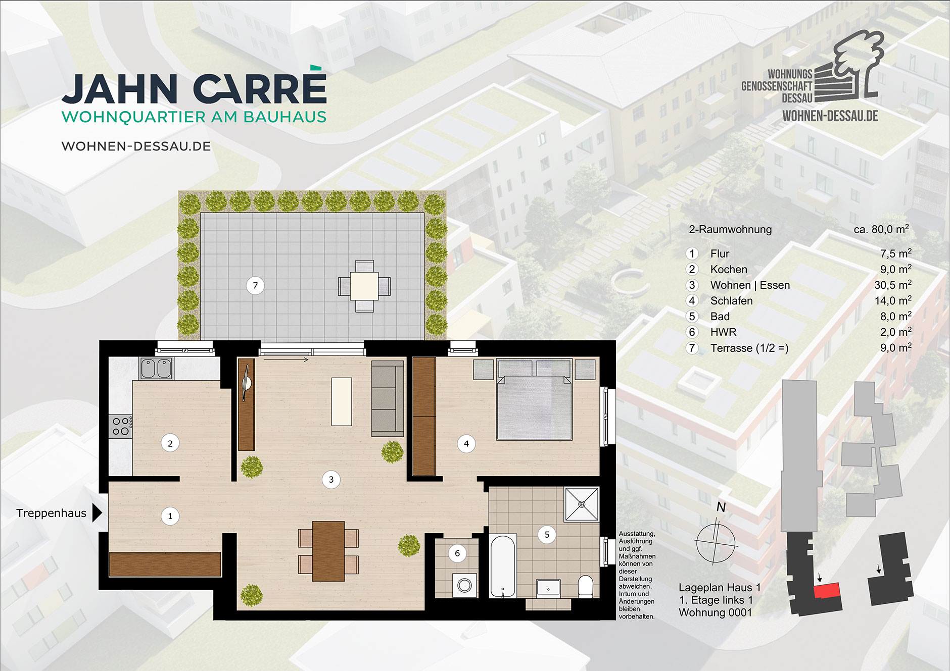 - alle Wohnungen und Stadthäuser verfügen über Balkone bzw. Terrassen